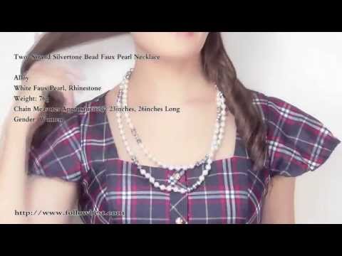 Two Strand Silvertone Bead Faux Pearl Necklace